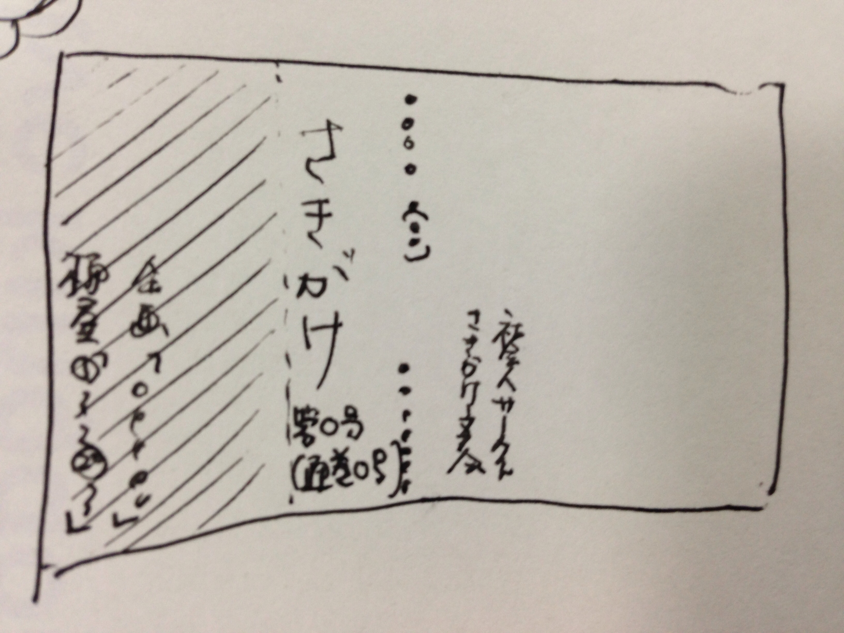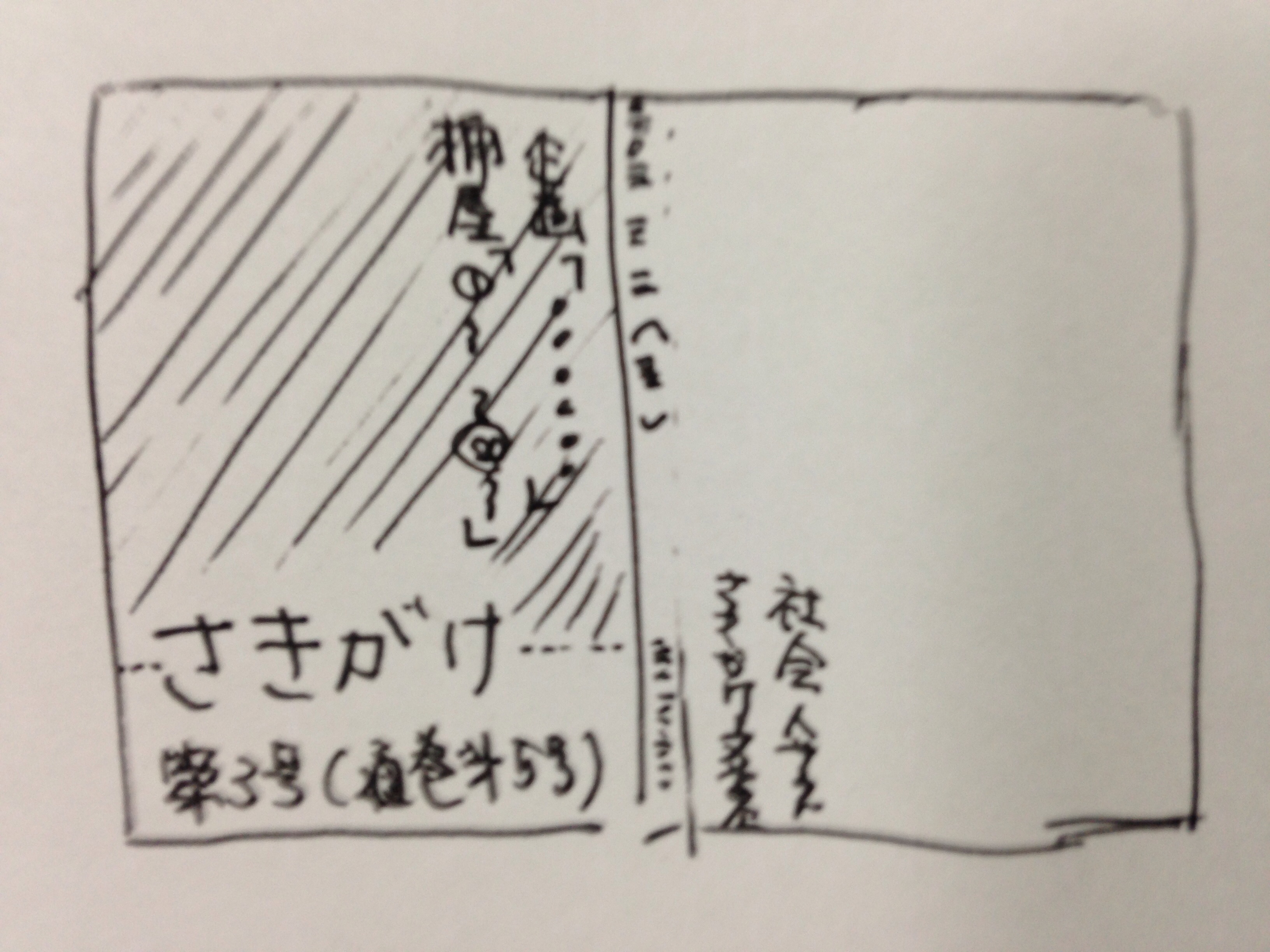 販売物について:販売予定の冊子は「さきがけ1・2・3号」「蘖2・3号」「篠崎蓮個人誌」です。その他にもこうしたらいいのでは?などと言った意見があったら話し合ってください。
